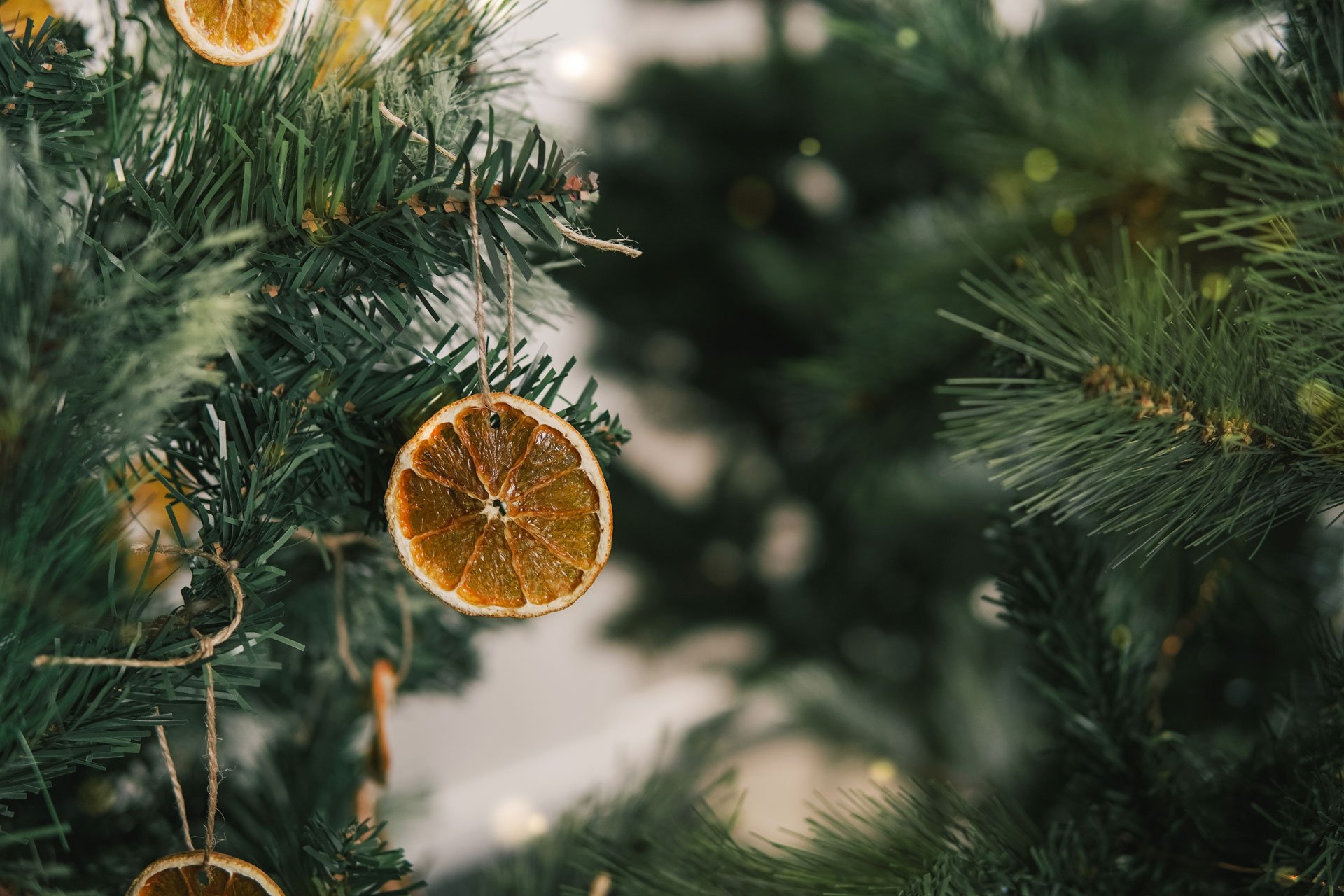 Tørkede appelsin- og sitrusskiver er perfekte som juletrepynt. De gyldne og røde tonene spiller vakkert mot grønne grener og gir treet et klassisk og naturlig uttrykk.